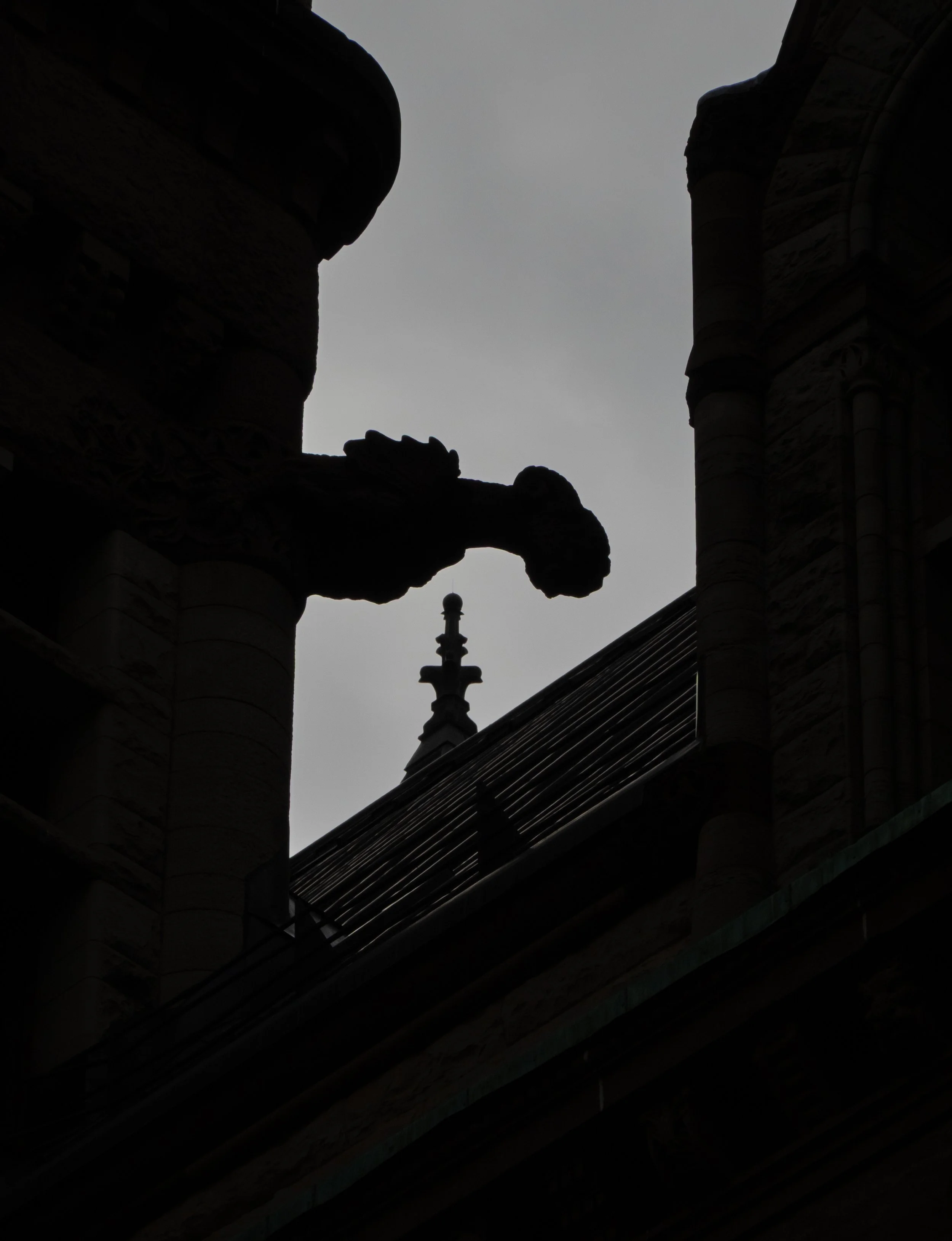 More Gargoyles and Spires on Old City Hall in Silhouette Against an Early Autumn Sky